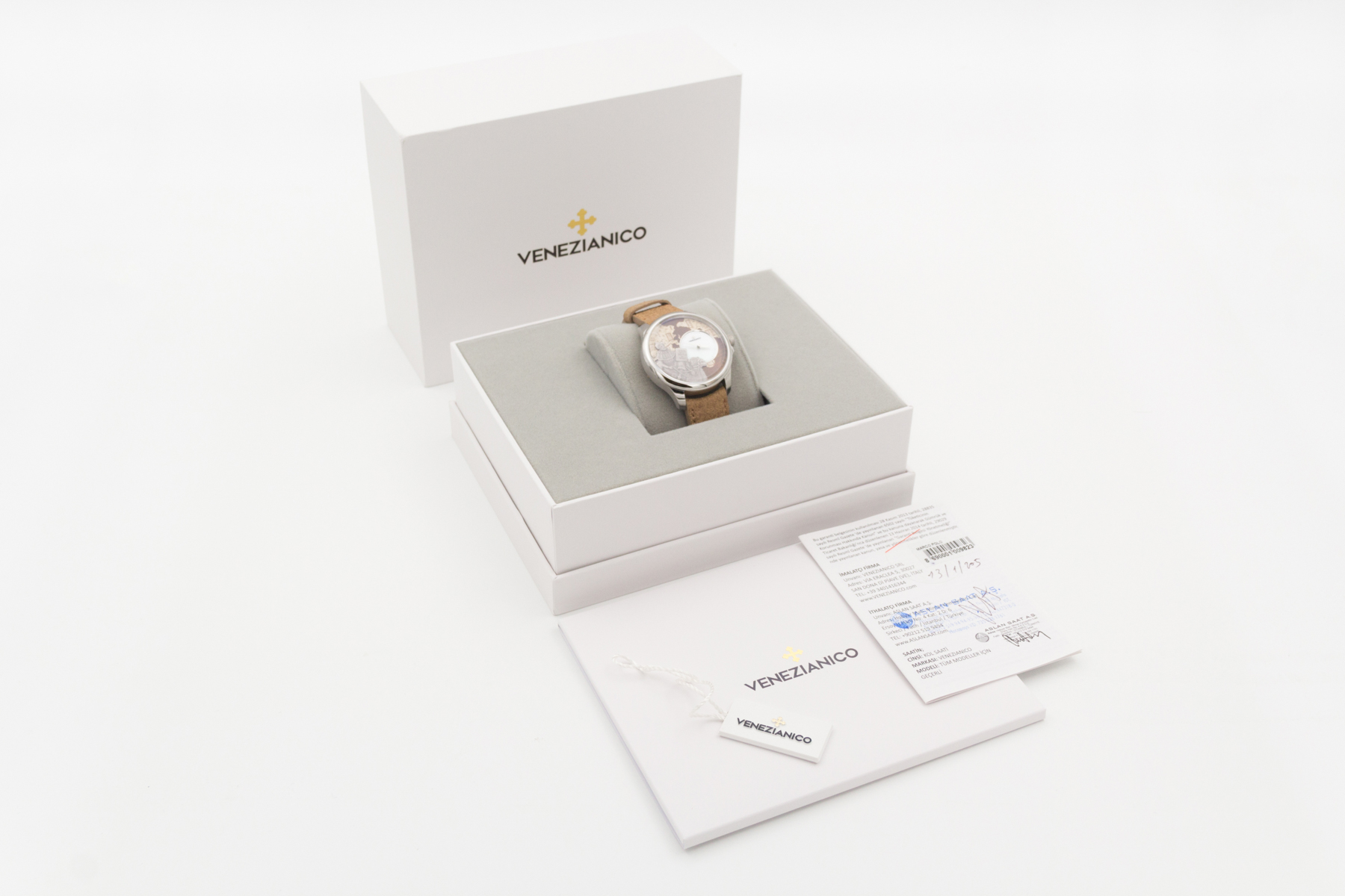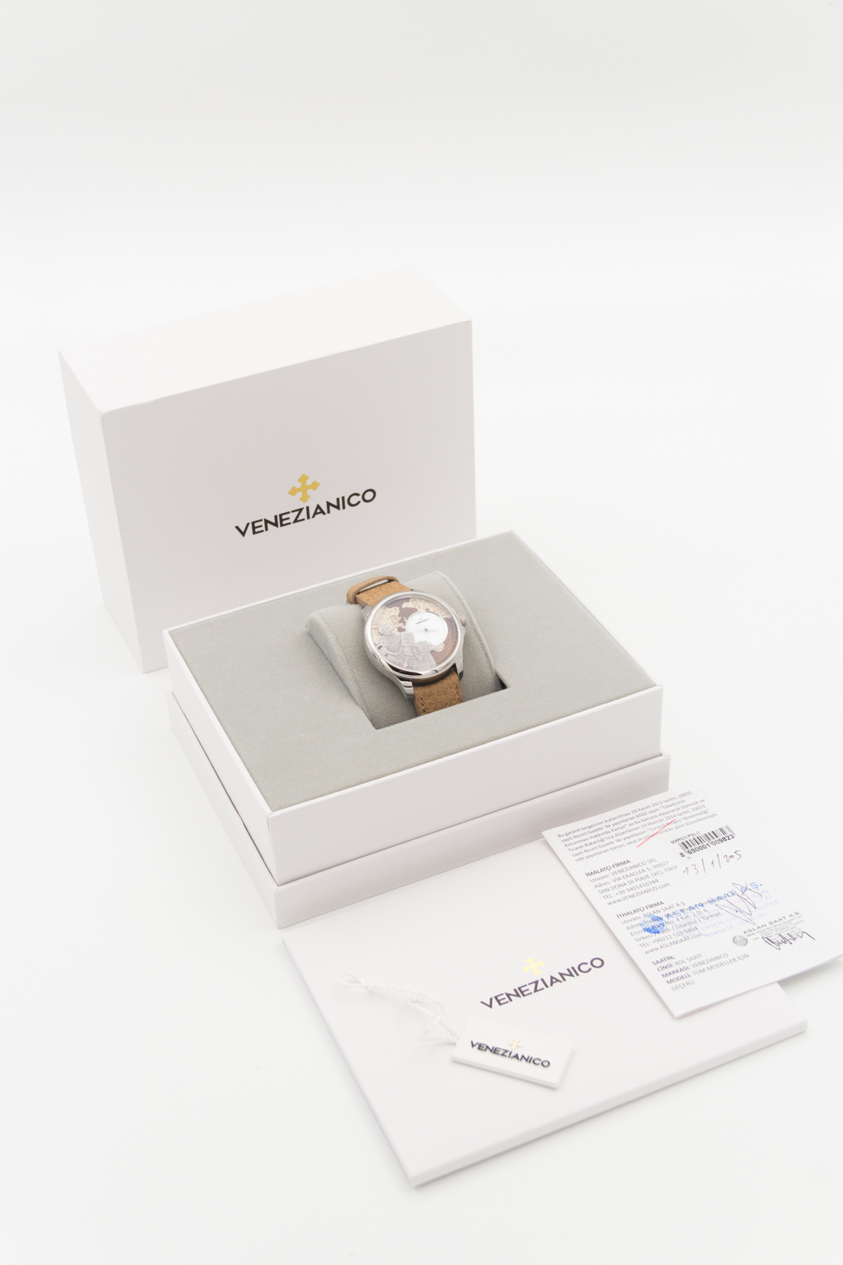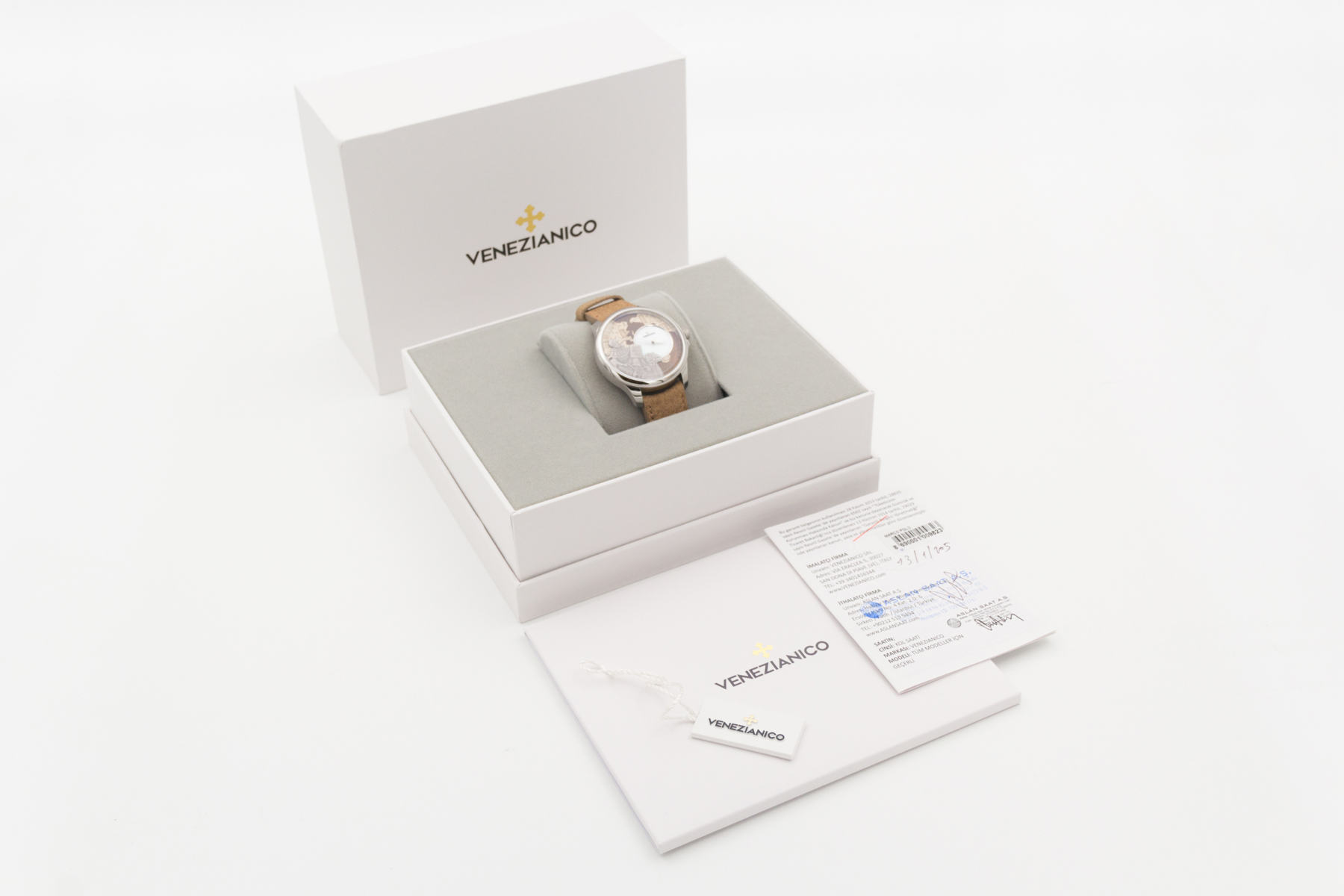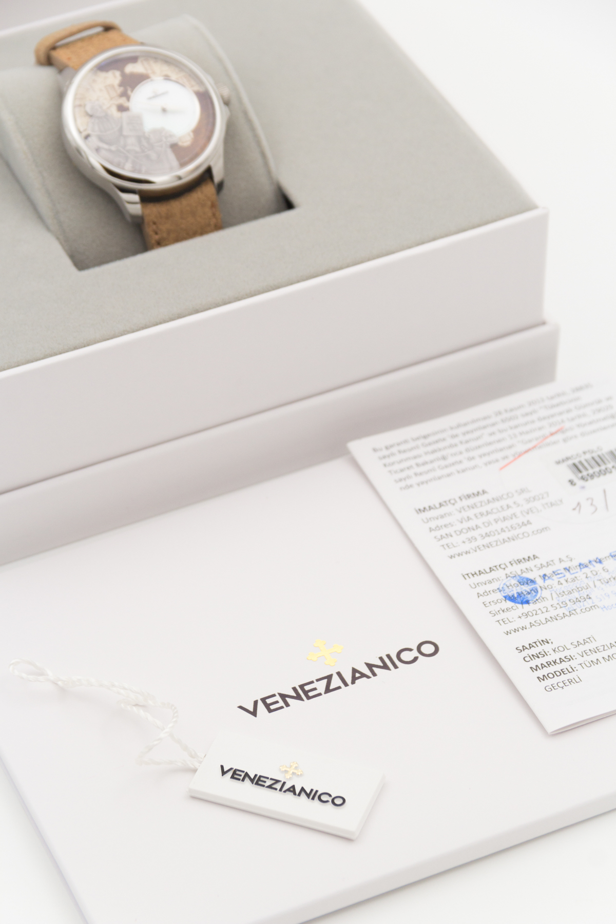 İtalya dan bağımzsız bir saat markası… Venezianico… Biz de bu şirketin eski ismi Meccaniche Veneziane ismi ile de Redontore bir saati var… Yeni ismi Venezianico adını aldıktan sonra şirket daha da globale oynamaya karar verdi… Çok hoş yeni ürün aileleri sırayla gelmeye başladı.. Buradaki saatimiz ünlü seyyah Marco Polo’nun ölümünün 700. yılı şerefine üretilmiş içi işlemeli bir saat… Saat tümüyle el işçiliği ile ve sadece 400 adet üretilmiş. Kadranında, “Il Milione” kitabını tutarak bir dromedarin üzerinde tasvir edilen Marco Polo’nun pirinç kabartması bulunmakta.. Papirüs zemin üzerine işlenmiş Asya haritası, onun Doğu’ya yaptığı destansı yolculukları anlatmaktadır.. Saat 3 konumunda yer alan sedef kadran, bu kompozisyona zarif bir dokunuş ekleyerek ünlü kâşife adeta bir saygı duruşunda bulunmuş.